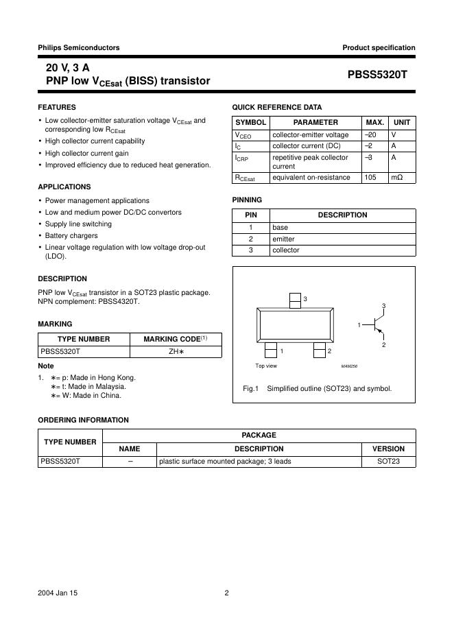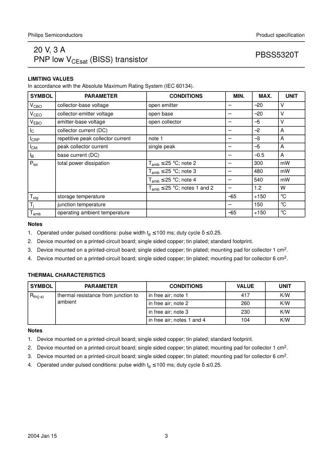 philips PBSS5320T 20 V, 3 A PNP low VCEsat (BISS) transistor 数据手册.pdf