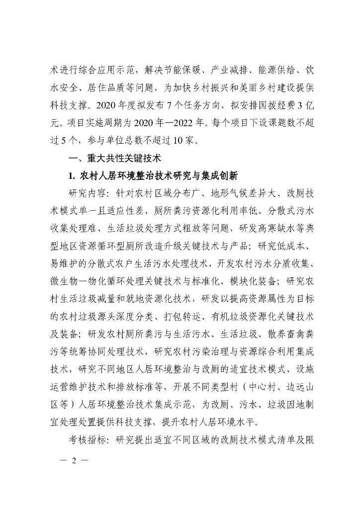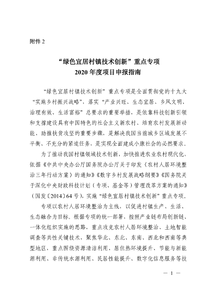 “绿色宜居村镇技术创新”重点专项2020年度项目申报指南.pdf