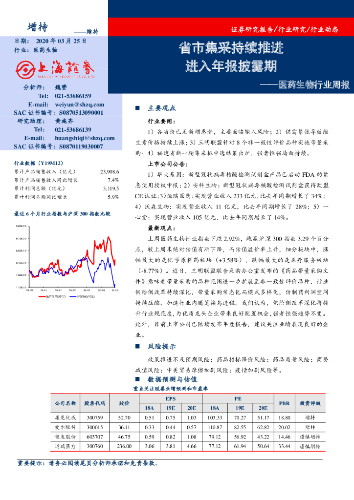 上海证券:医药生物行业周报:省市集采持续推进 进入年报披露期.pdf