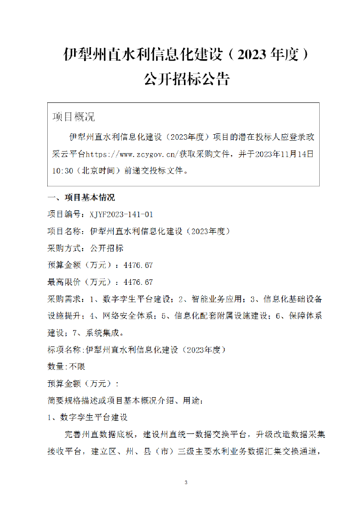 智慧水利-伊犁州直水利信息化建设(2023年度)招标文件.pdf