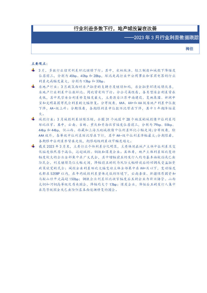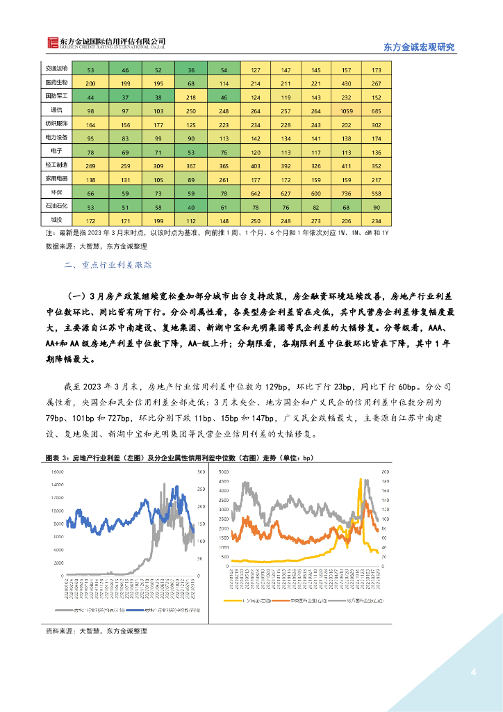 东方金诚:行业利差多数下行,地产城投皆在改善-2023年3月行业利差月报.pdf