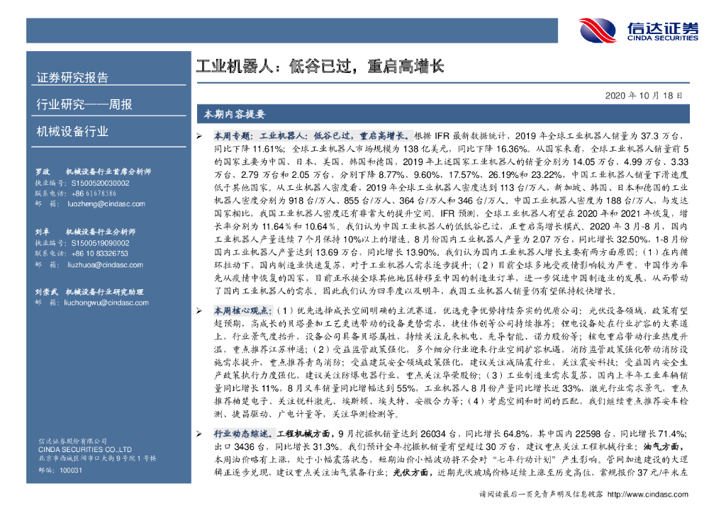 信达证券:机械设备行业周报:工业机器人:低谷已过,重启高增长.pdf