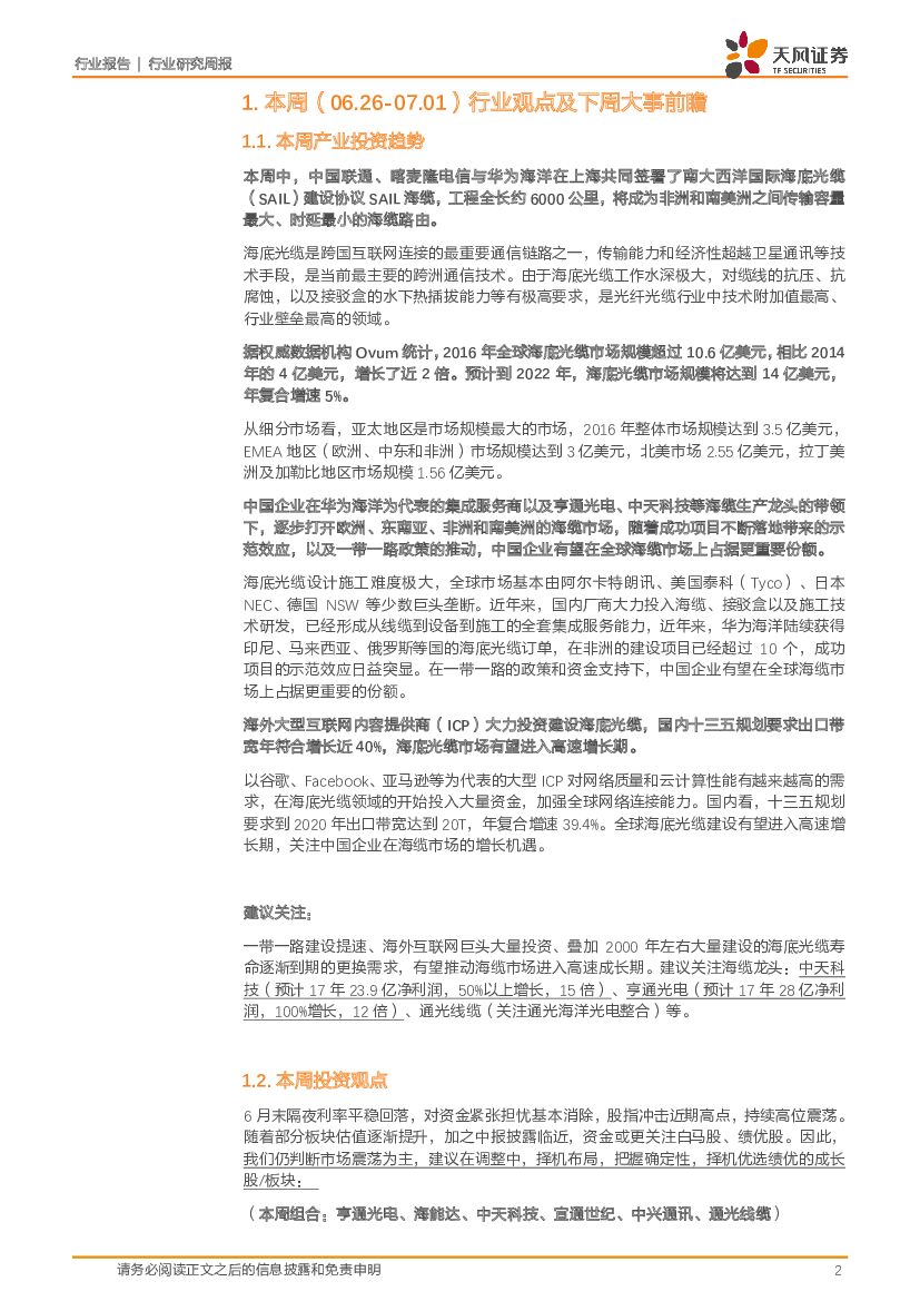 天风证券:通信行业研究周报:中国企业打破垄断,一带一路推动海底光缆高速增长.pdf