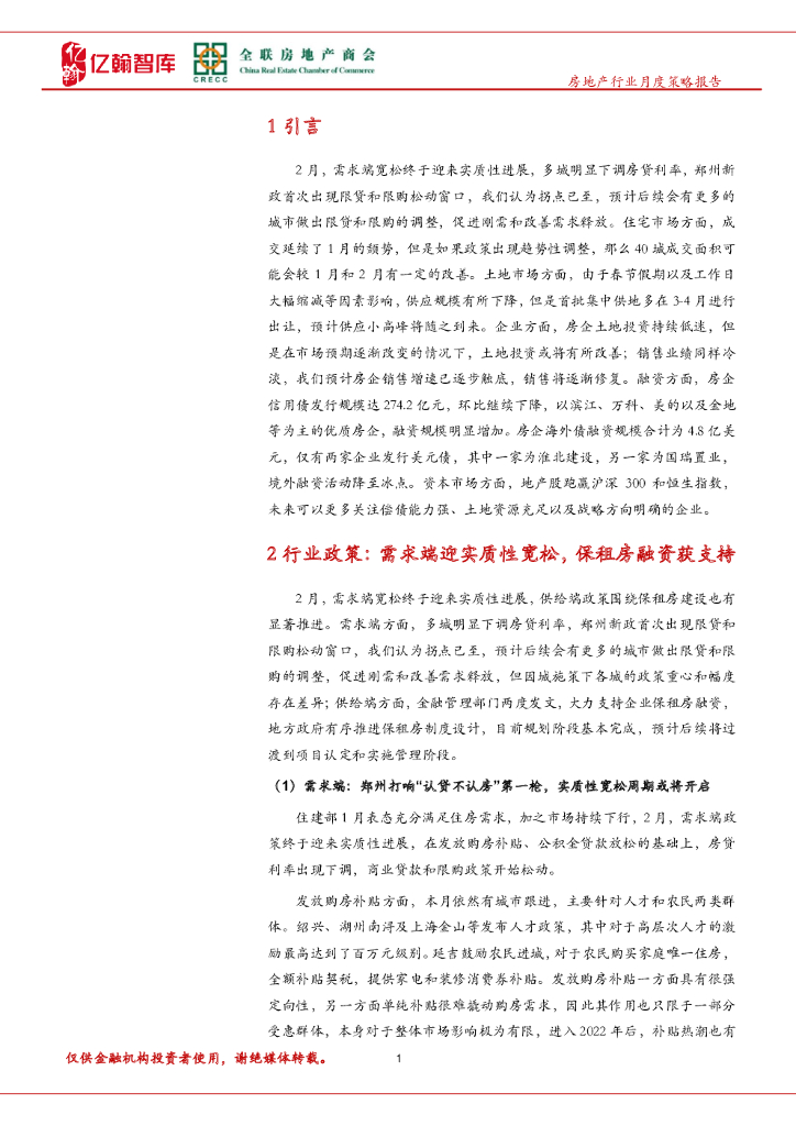 亿翰智库:2月房地产行业月报(第44期):销售与投资继续下探,政策是扭转局势的关键变量.pdf