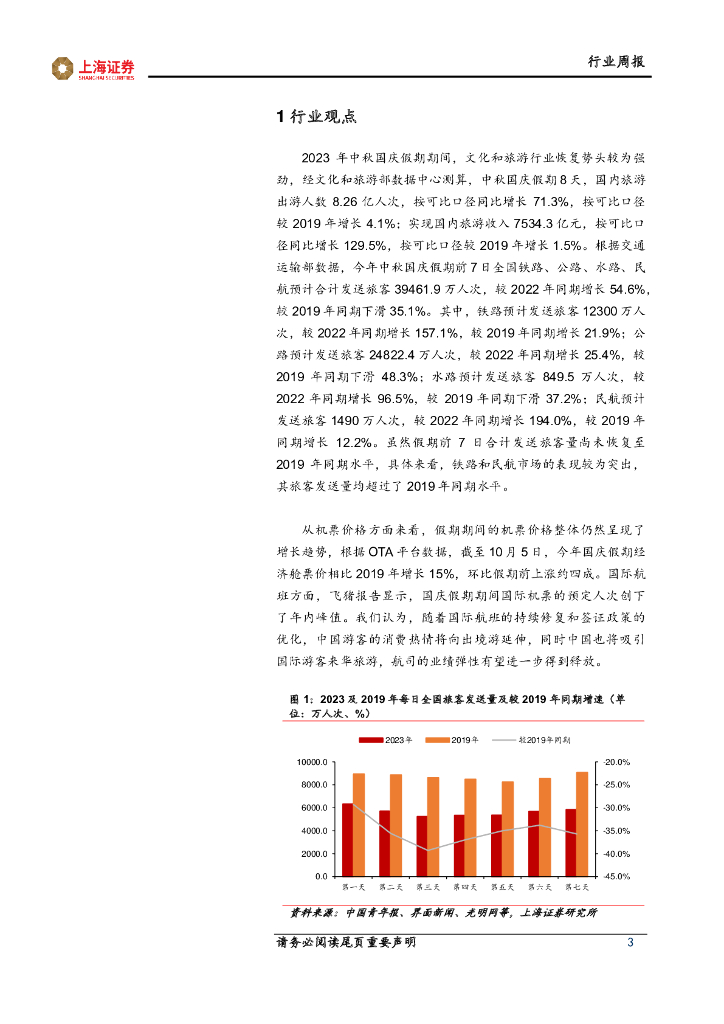 国信证券:社服行业10月投资策略:双节出游韧性增长,Q4兼顾高景气方向与周期预期修复