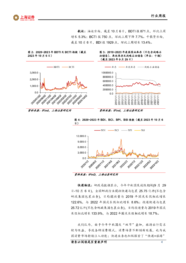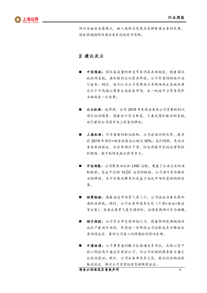 上海证券:交通运输行业周报:俄罗斯政府解除柴油出口禁令,“快递+旅游”模式推动快递业务表现较为亮眼.pdf