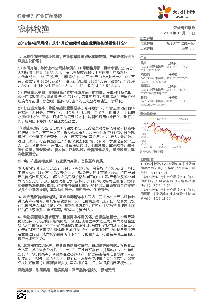 天风证券:农林牧渔2018第49周周报:从11月份生猪养殖企业销售能够看到什么?.pdf
