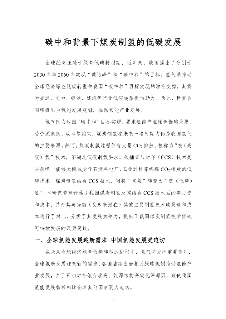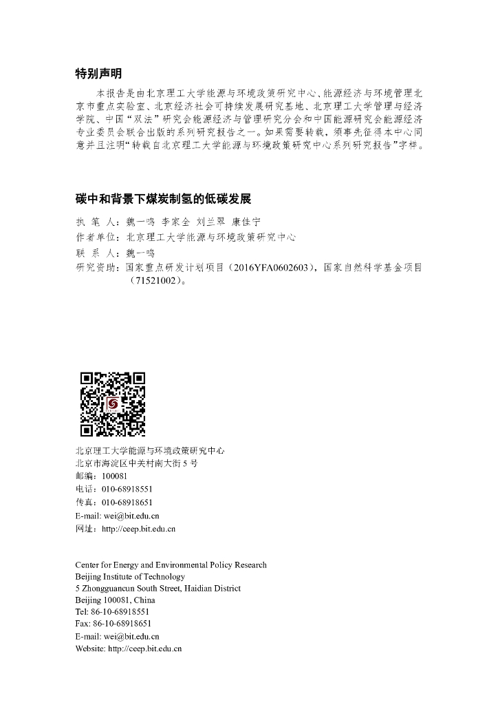 北京理工大学:碳中和背景下煤炭制氢的低碳发展.pdf