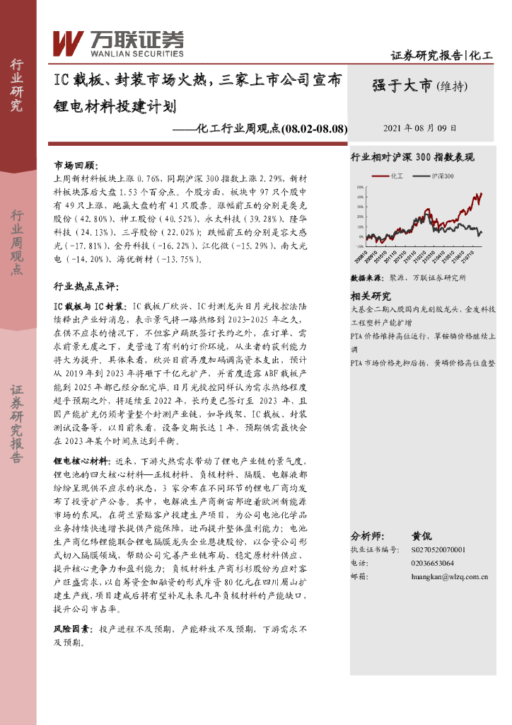 万联证券:化工行业周观点:IC载板、封装市场火热,三家上市公司宣布锂电材料投建计划.pdf