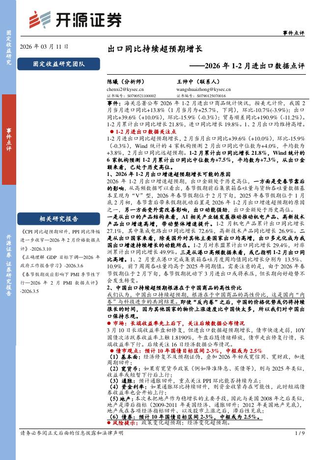 开源证券:2026年1-2月进出口数据点评:出口同比持续超预期增长-260312.pdf