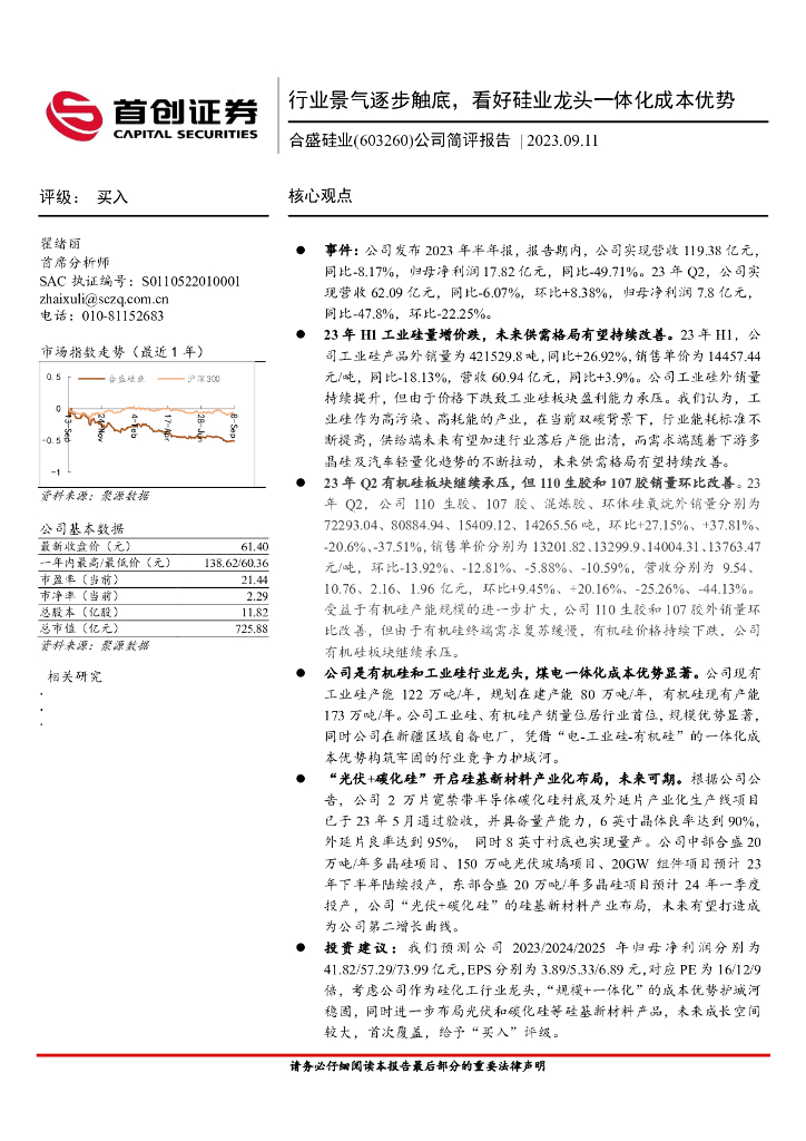 首创证券:合盛硅业(603260)-公司简评报告:行业景气逐步触底,看好硅业龙头一体化成本优势.pdf
