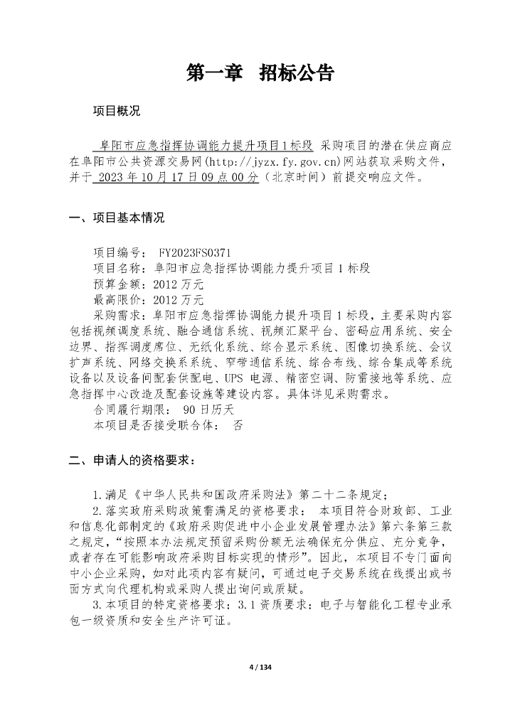智慧应急-阜阳市应急指挥协调能力提升项目1标段招标文件.pdf
