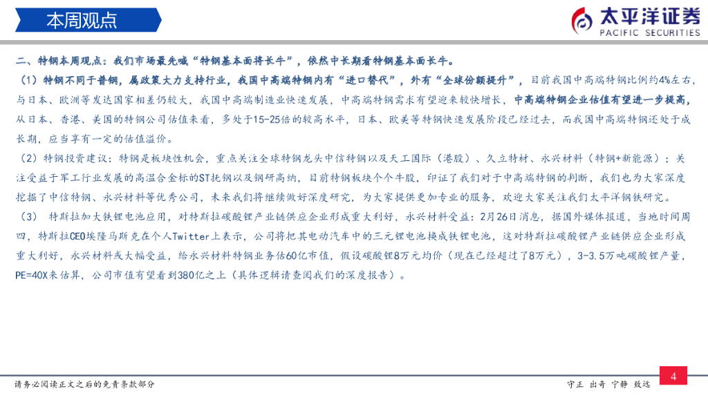 太平洋证券:钢铁周报:特斯拉加大铁锂电池应用,关注永兴材料.pdf