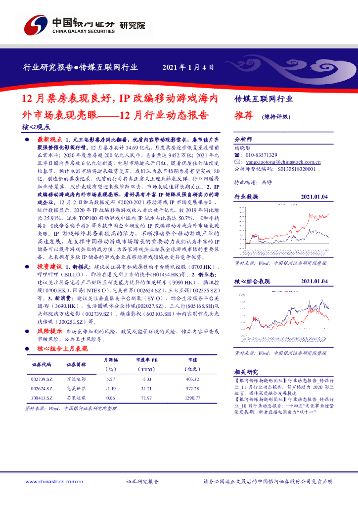 中国银河:传媒互联网行业:12月行业动态报告:12月票房表现良好,IP改编移动游戏海内外市场表现亮眼.pdf