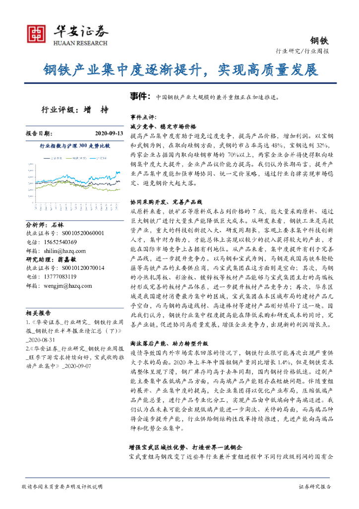 华安证券:钢铁:钢铁产业集中度逐渐提升,实现高质量发展.pdf
