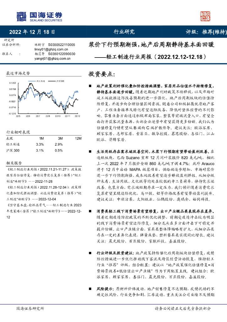 国海证券:轻工制造行业周报:浆价下行预期渐强,地产后周期静待基本面回暖.pdf