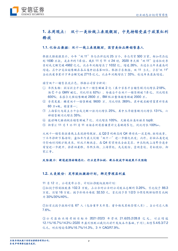 安信证券:商贸零售行业动态分析:美妆线上表现靓丽,丸美发布股权激励计划绑定管理层利益.pdf
