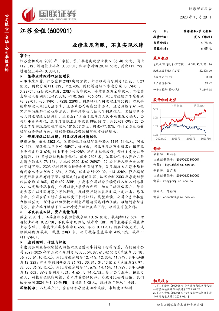 国联证券:江苏金租(600901)-国联证券-金融-公司季报点评-业绩表现亮眼,不良实现双降.pdf