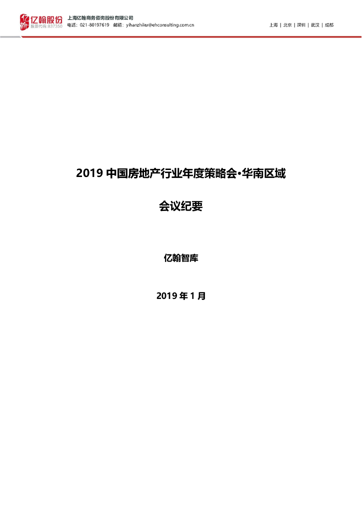 亿翰智库:2019中国房地产行业年度策略会·华南区域会议纪要.pdf