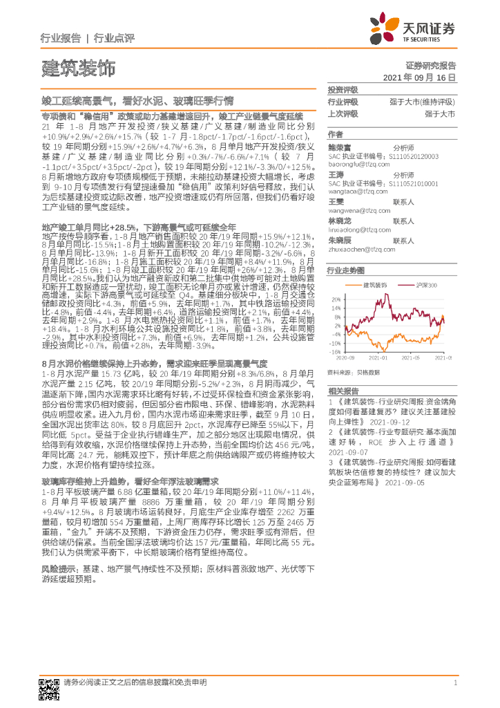 天风证券:建筑装饰:竣工延续高景气,看好水泥、玻璃旺季行情.pdf