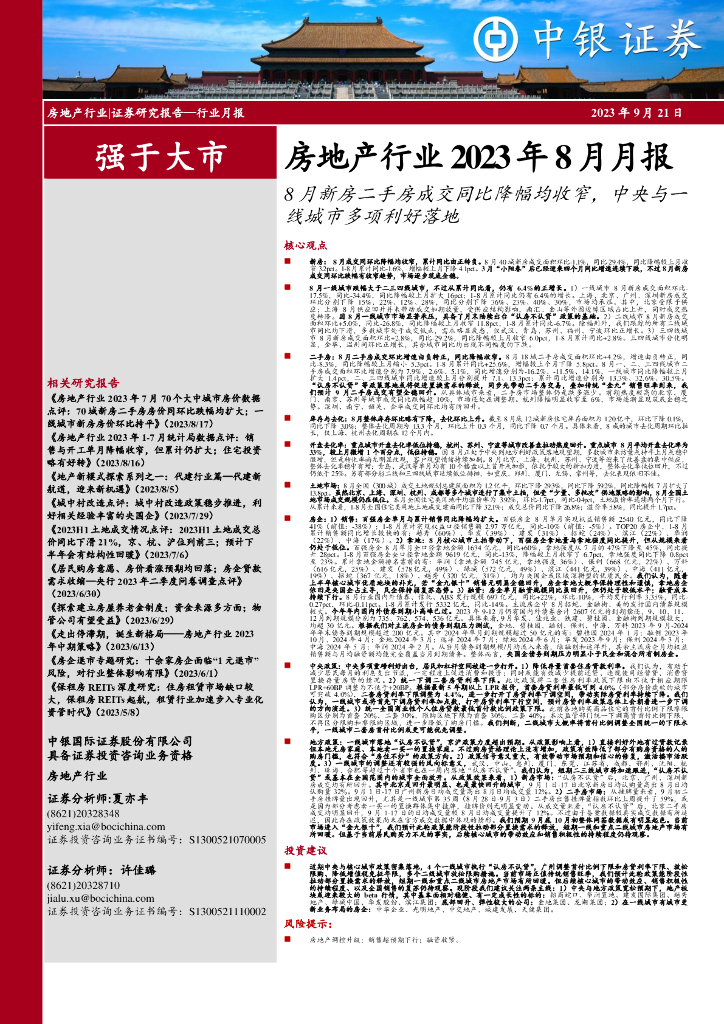 中银证券:房地产行业2023年8月月报:8月新房二手房成交同比降幅均收窄,中央与一线城市多项利好落地.pdf