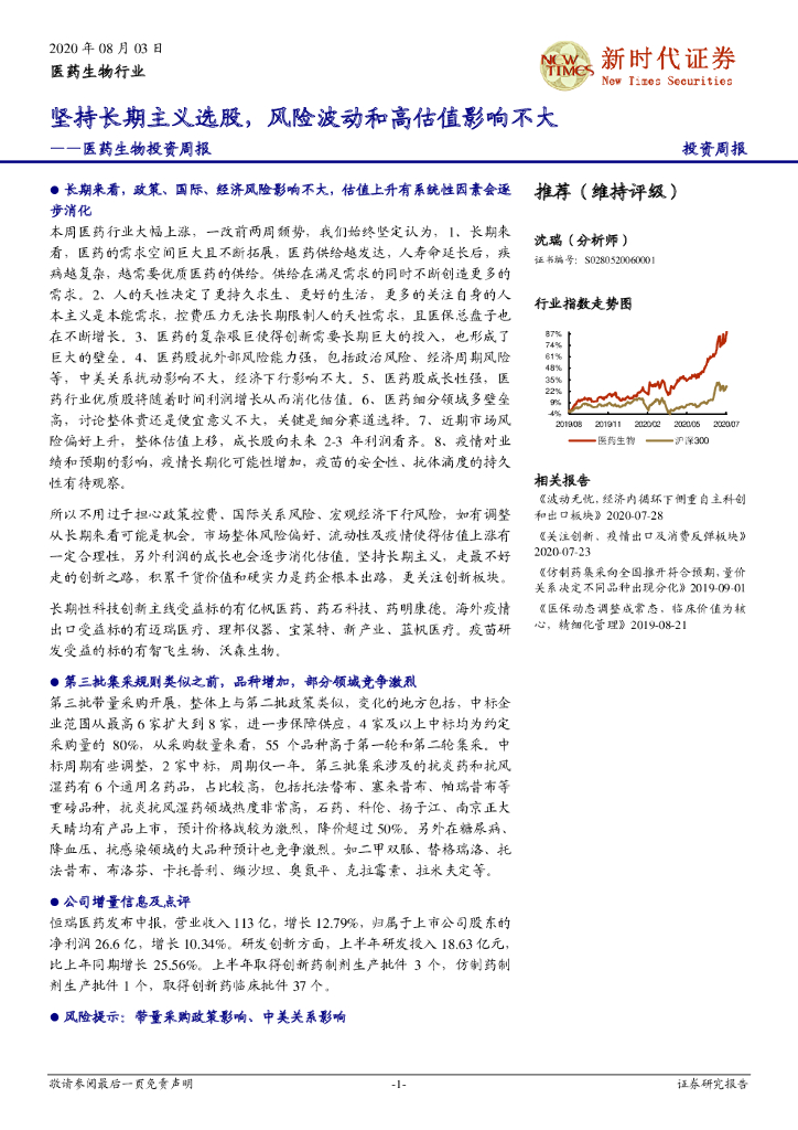 新时代证券:医药生物投资周报:坚持长期主义选股,风险波动和高估值影响不大.pdf