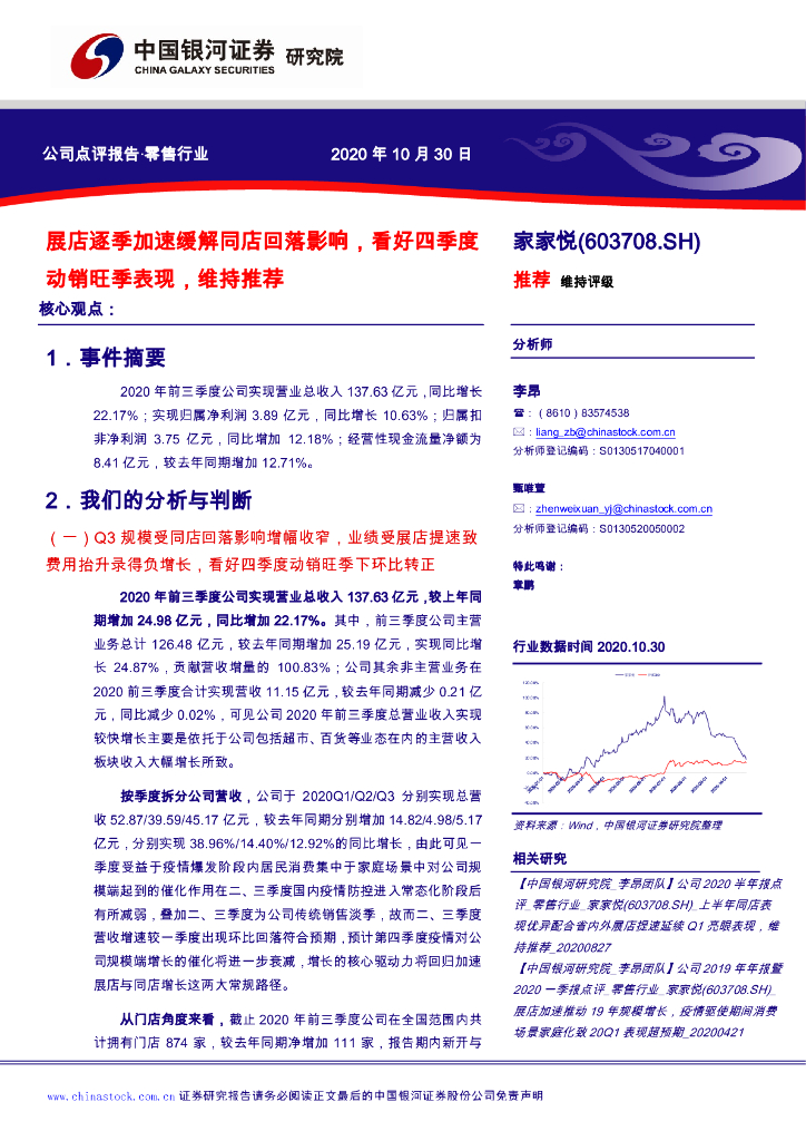 中国银河:家家悦(603708)-展店逐季加速缓解同店回落影响,看好四季度动销旺季表现,维持推荐.pdf