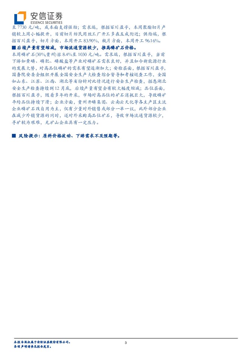 安信证券:基础化工:油价上涨,磷矿石、复合肥、涤纶短纤、聚酯切片等产品价格上涨.pdf