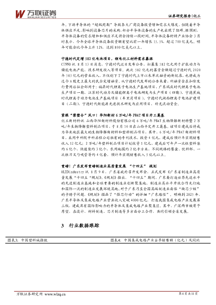 万联证券:化工新材料板块周观点:宁德时代定增582亿电池项目,华阳新材6万吨/年PBAT项目开工奠基.pdf