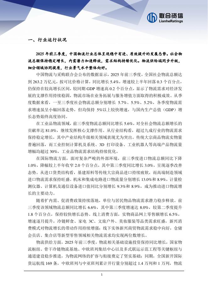 联合资信:2025年前三季度物流行业运行分析报告.pdf