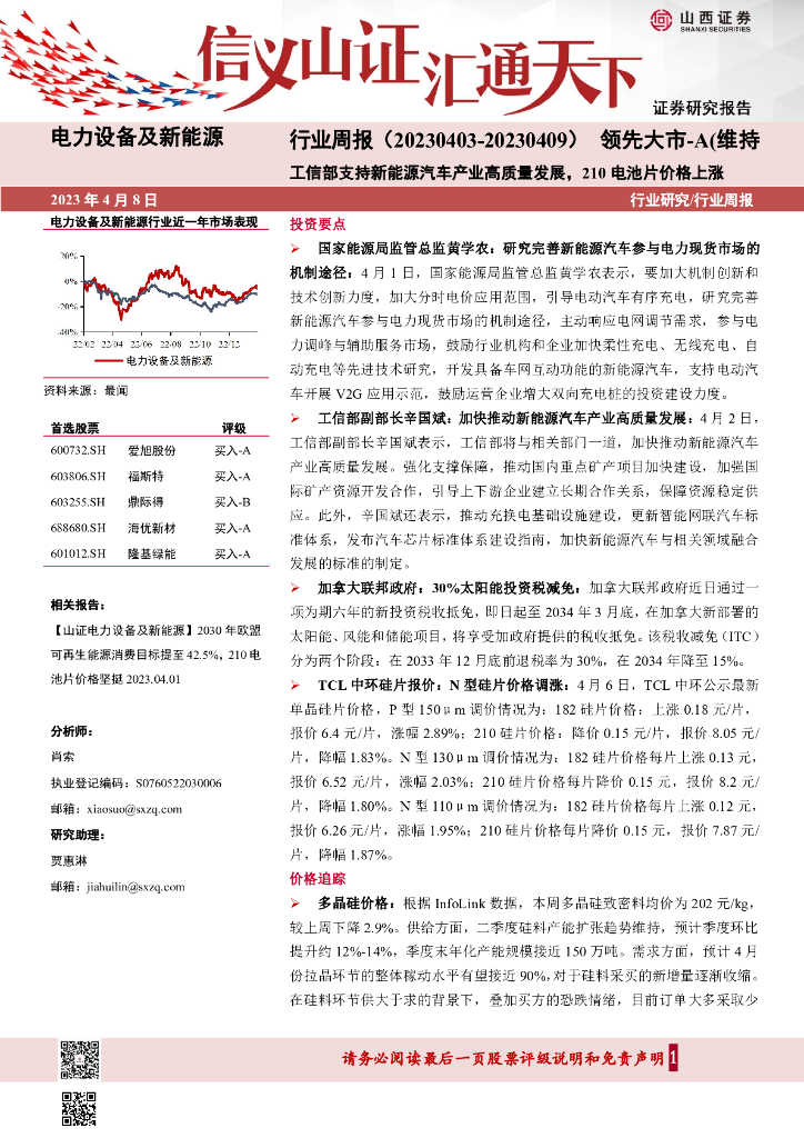 山西证券:电力设备及新能源行业周报:工信部支持新能源汽车产业高质量发展,210电池片价格上涨.pdf