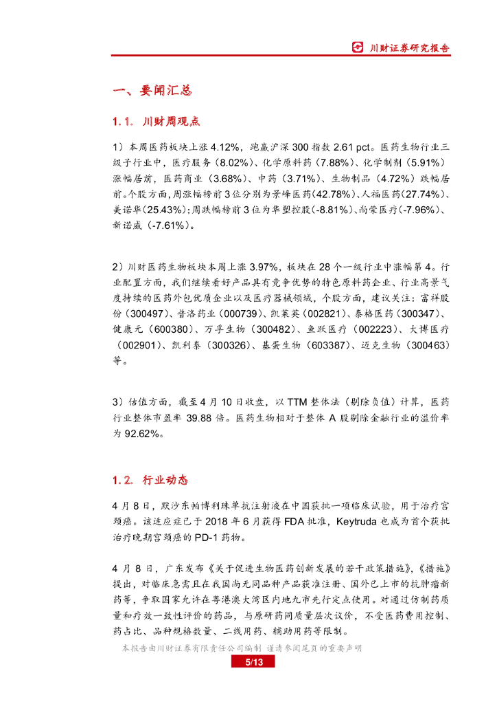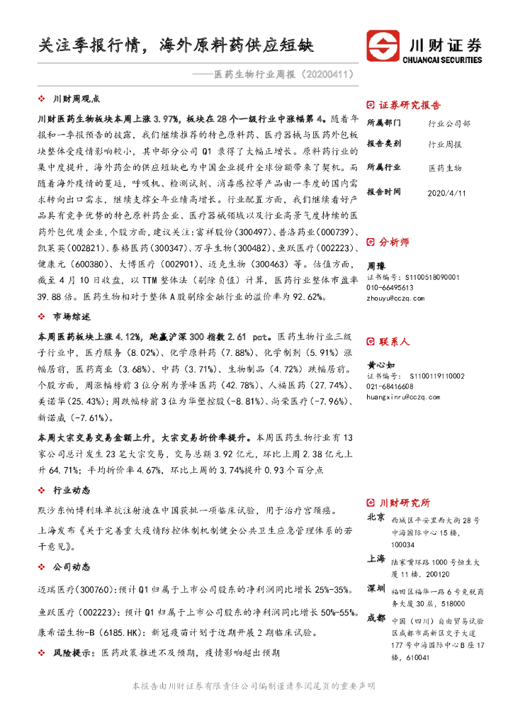 川财证券:医药生物行业周报:关注季报行情,海外原料药供应短缺.pdf