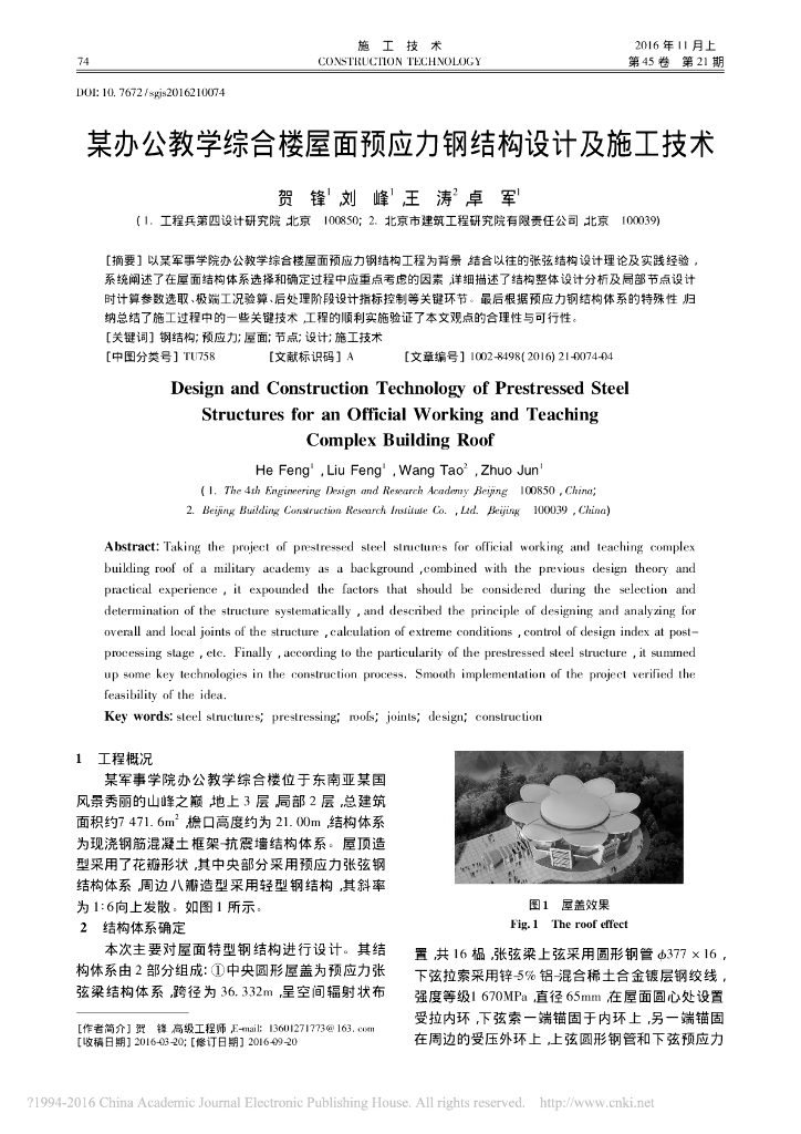 教学楼屋面预应力钢结构设计及施工技术.pdf