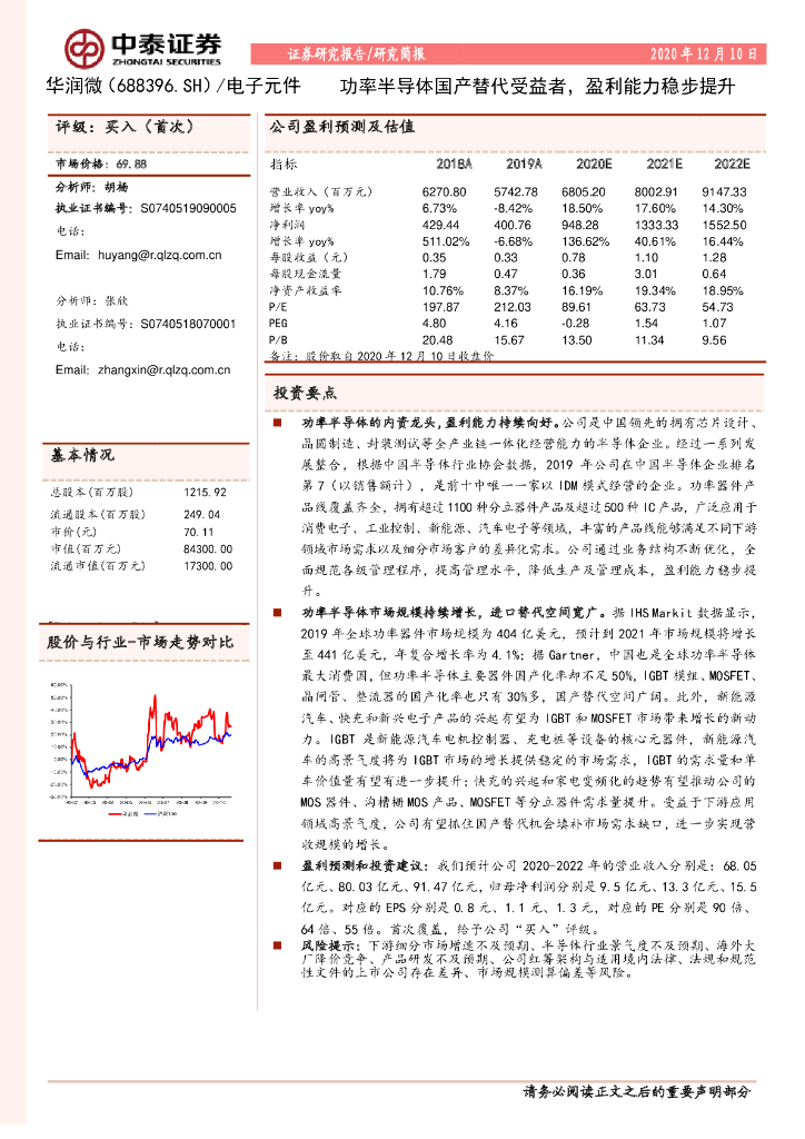 中泰证券:华润微(688396)-功率半导体国产替代受益者,盈利能力稳步提升.pdf