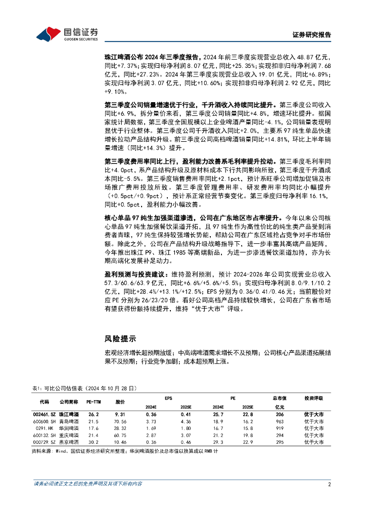 国信证券:珠江啤酒(002461)-第三季度销量增速优于行业,千升酒收入持续同比提升.pdf