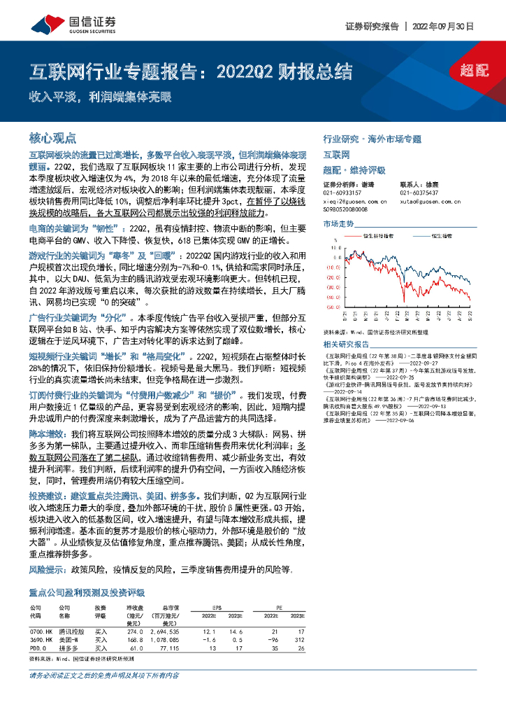 国信证券:互联网行业专题报告:2022Q2财报总结:收入平淡,利润端集体亮眼.pdf