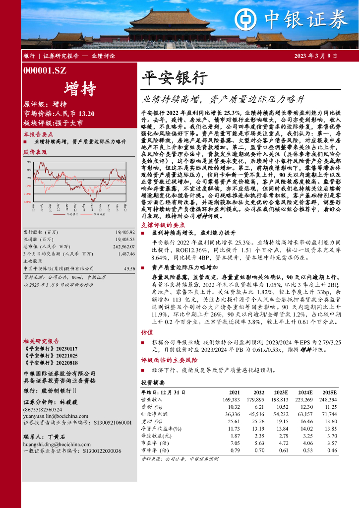 中银证券:平安银行(000001)-业绩持续高增,资产质量边际压力略升.pdf