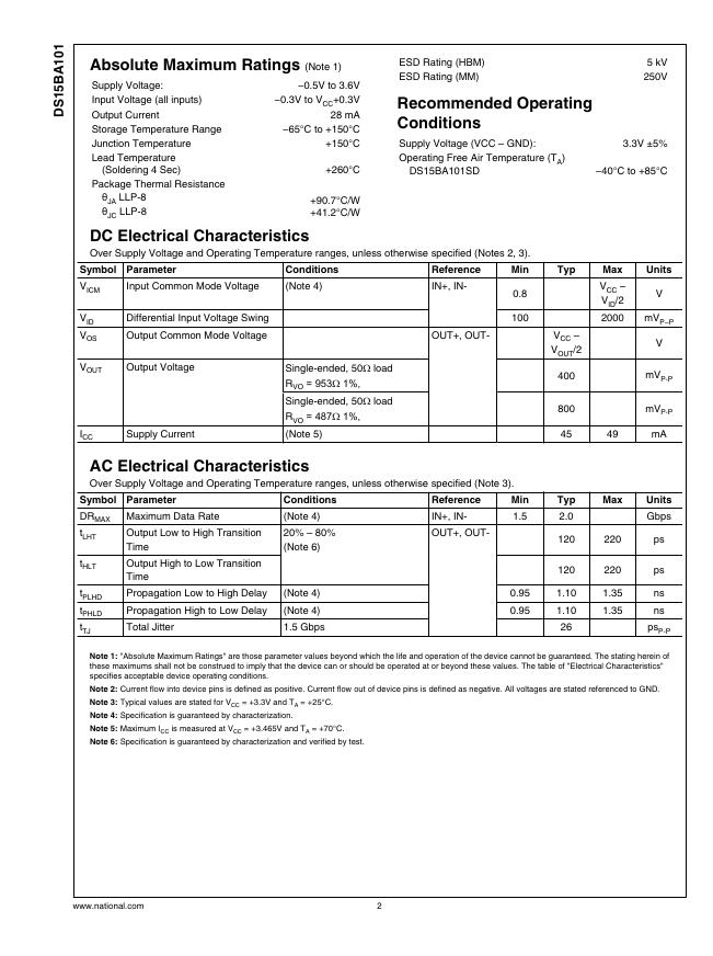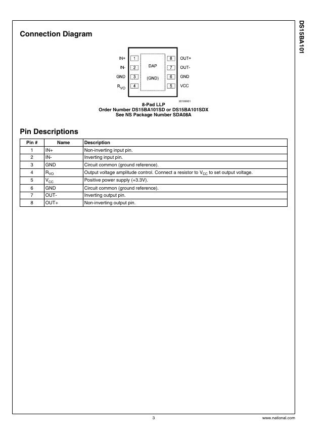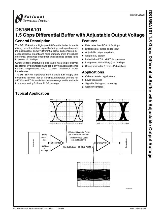 NATIONAL SEMICONDUCTOR - May 27, 2008 DS15BA101 1.5 Gbps Differential Buffer with Adjustable Output Voltage General 说明书
