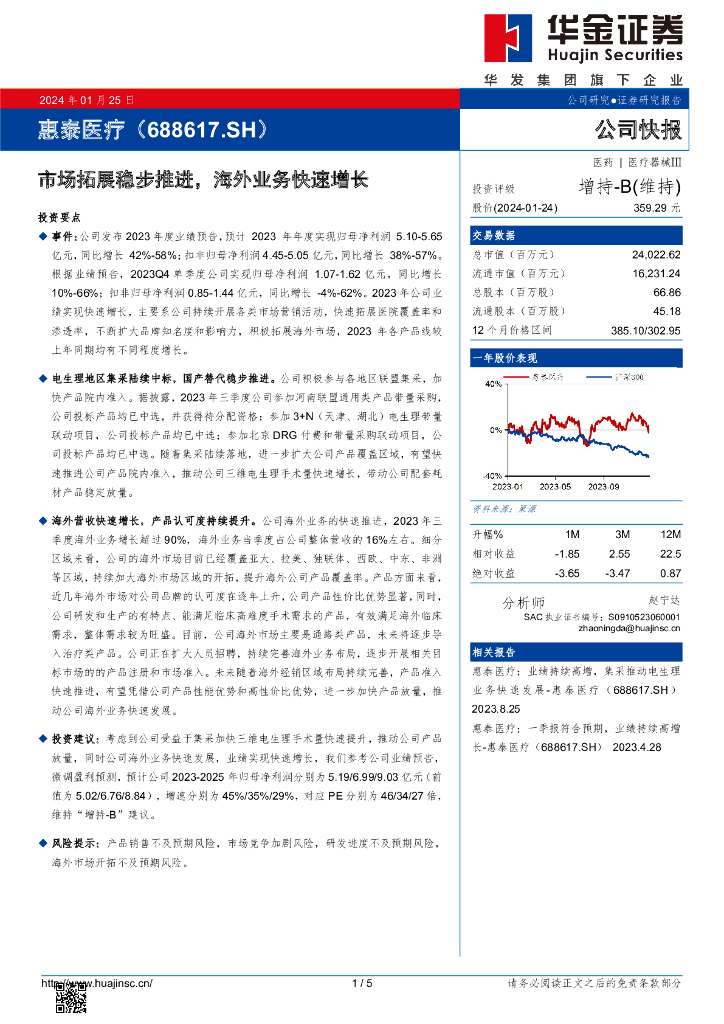 华金证券:惠泰医疗(688617)-市场拓展稳步推进,海外业务快速增长.pdf