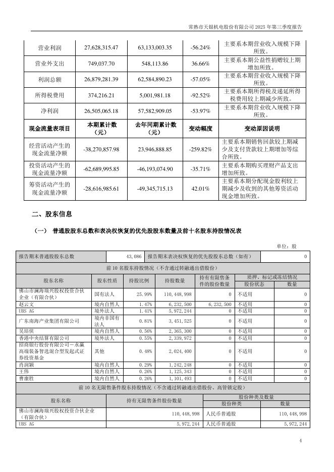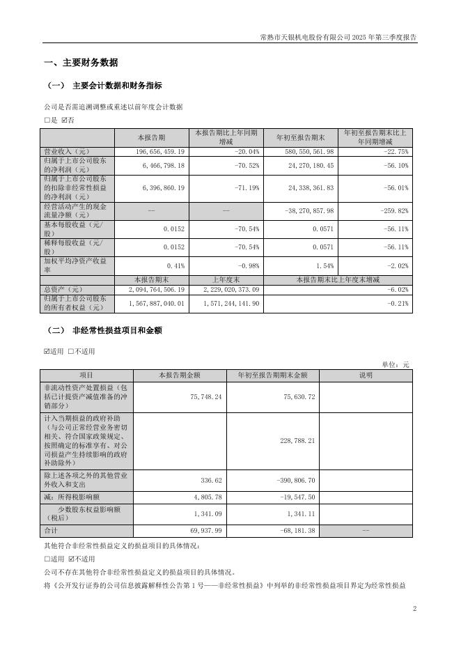 300342-天银机电:2025年三季度报告.pdf