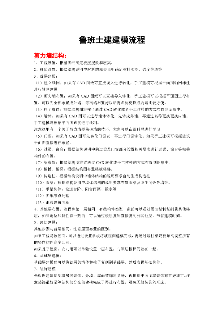 鲁班土建算量建模流程.pdf
