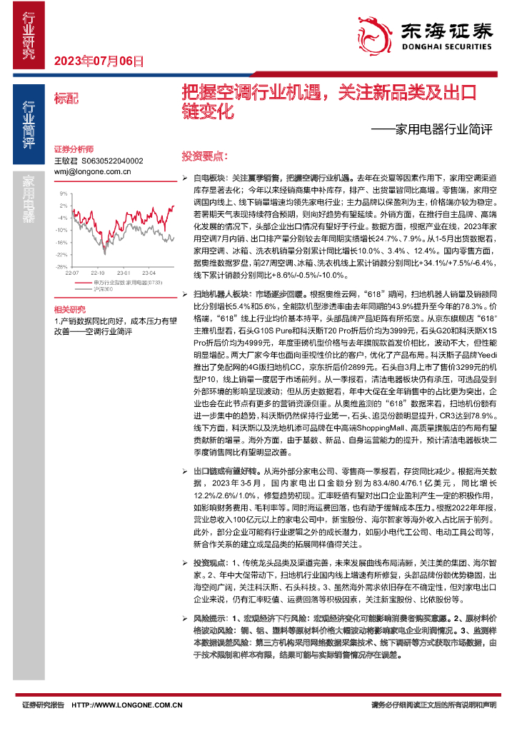 东海证券:家用电器行业简评:把握空调行业机遇,关注新品类及出口链变化.pdf