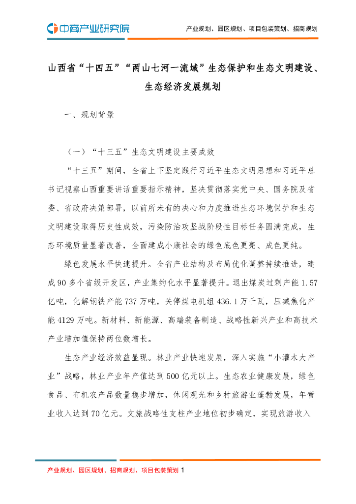 山西省“十四五”“两山七河一流域”生态保护和生态文明建设、生态经济发展规划.pdf