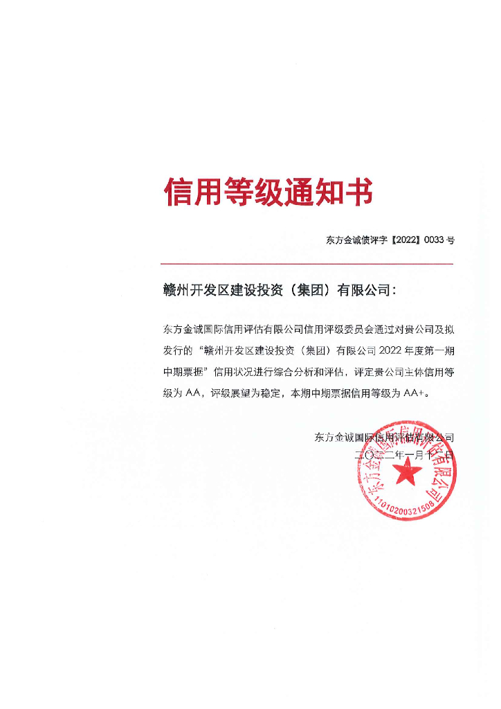 东方金诚:赣州开发区建设投资(集团)有限公司2022年度第一期中期票据信用评级报告及跟踪评级安排.pdf