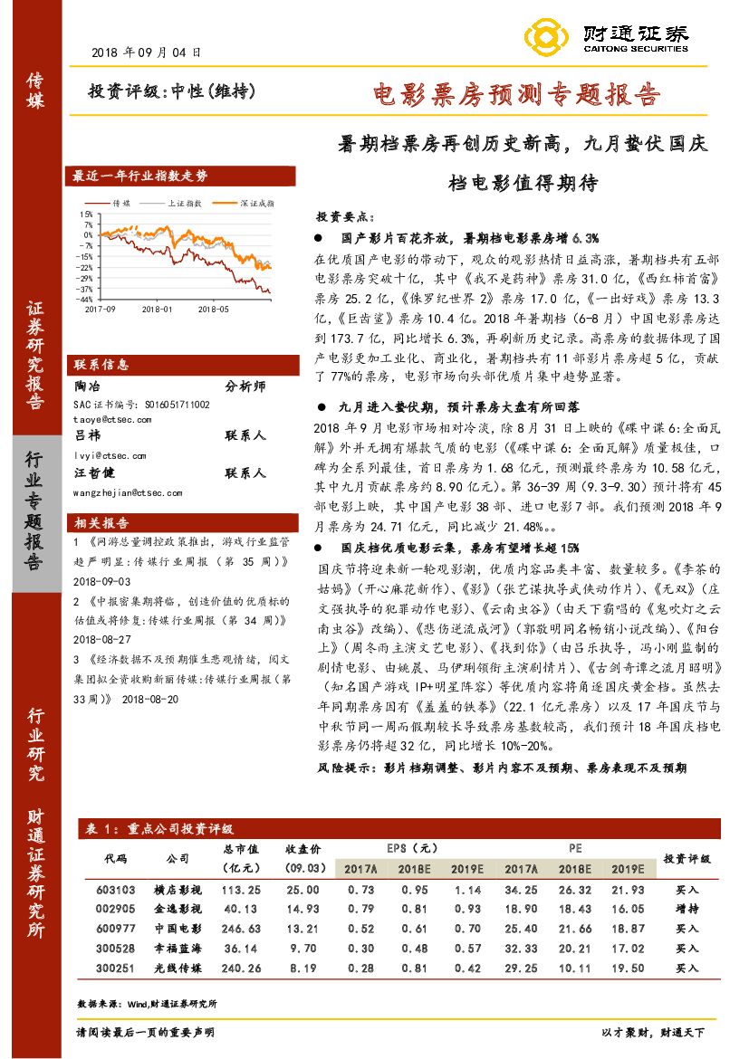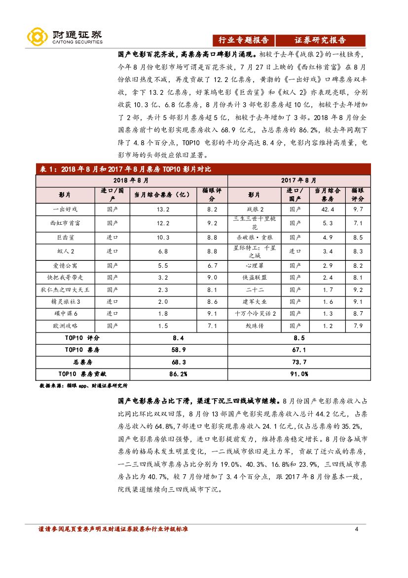 财通证券:电影票房预测专题报告:暑期档票房再创历史新高,九月蛰伏国庆档电影值得期待.pdf