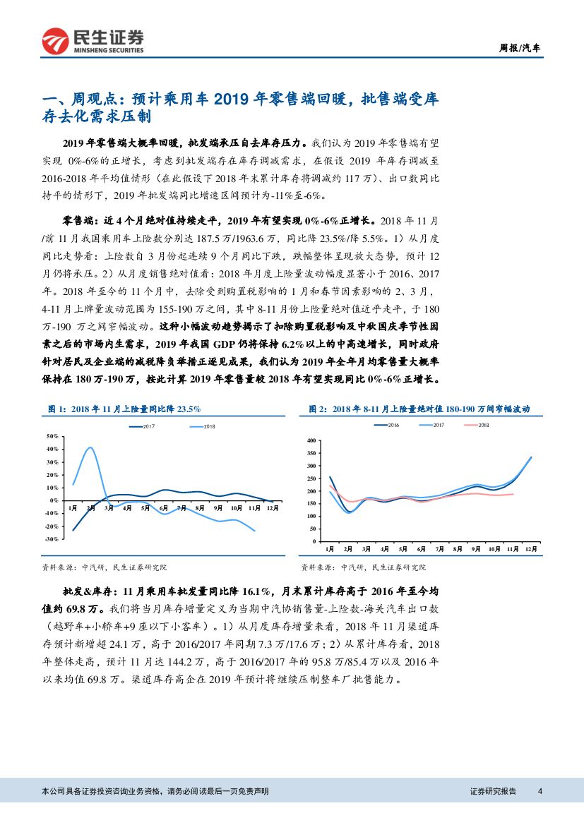 民生证券:汽车周报:预计乘用车2019年零售端回暖,批售端受库存去化需求压制.pdf
