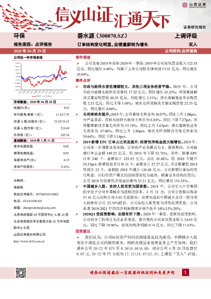 山西证券:碧水源(300070)-订单结构变化明显,业绩重新转为增长.pdf
