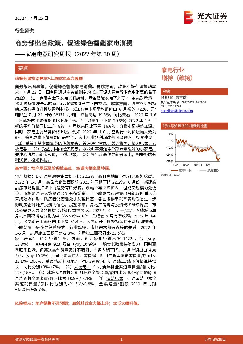 光大证券:家用电器研究周报(2022年第30周):商务部出台政策,促进绿色智能家电消费.pdf