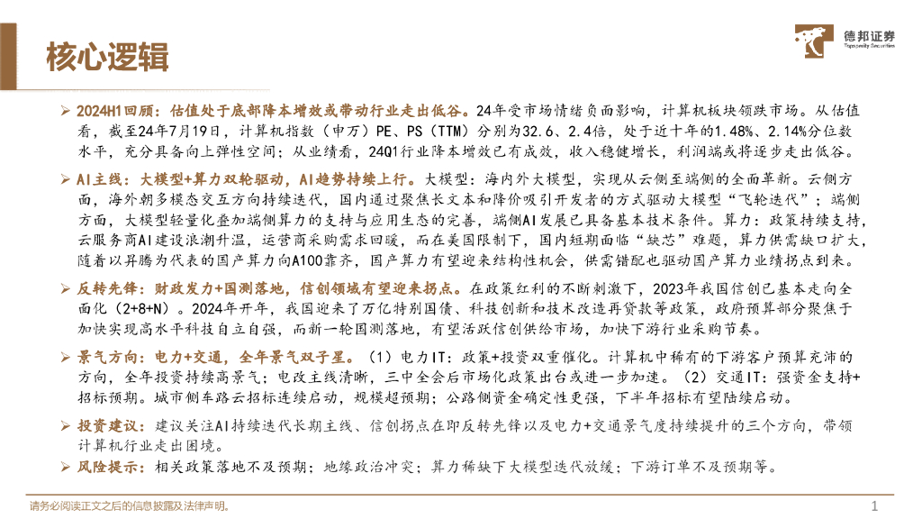 德邦证券:计算机行业2024年中期策略:三个方向,带领计算机走出困境.pdf