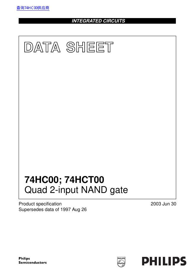 PHILIPS 74HC00; 74HCT00 Quad 2-input NAND gate 数据手册.pdf